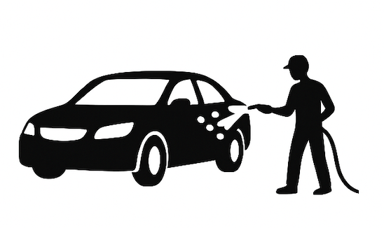 Her kan du forvaske bilen før du kører frem til maskinen. Der er sæbe, børster og højtryksrenser til rådighed ved forvasken.